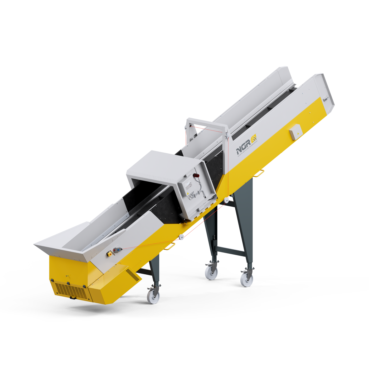 Das Förderband transportiert das Aufgabematerial durch einen Metalldetektor in den Aufgabetrichter. Bei Vorhandensein von metallischen Fremdkörpern wird das Band automatisch für die Entfernung gestoppt.