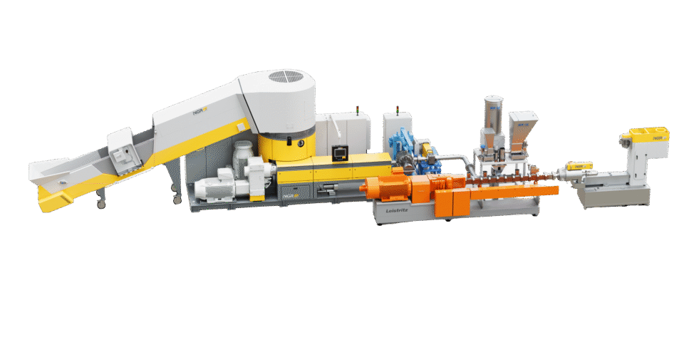 Im nachgeschalteten Doppelschneckenextruder wird das Material gezielt veredelt und für hochwertige Anwendungen optimiert. Da keine erneute Schmelzphase erforderlich ist, bleiben Energieverbrauch und Polymerbelastung gering – bei gleichzeitig höchster Qualität des Regranulats.