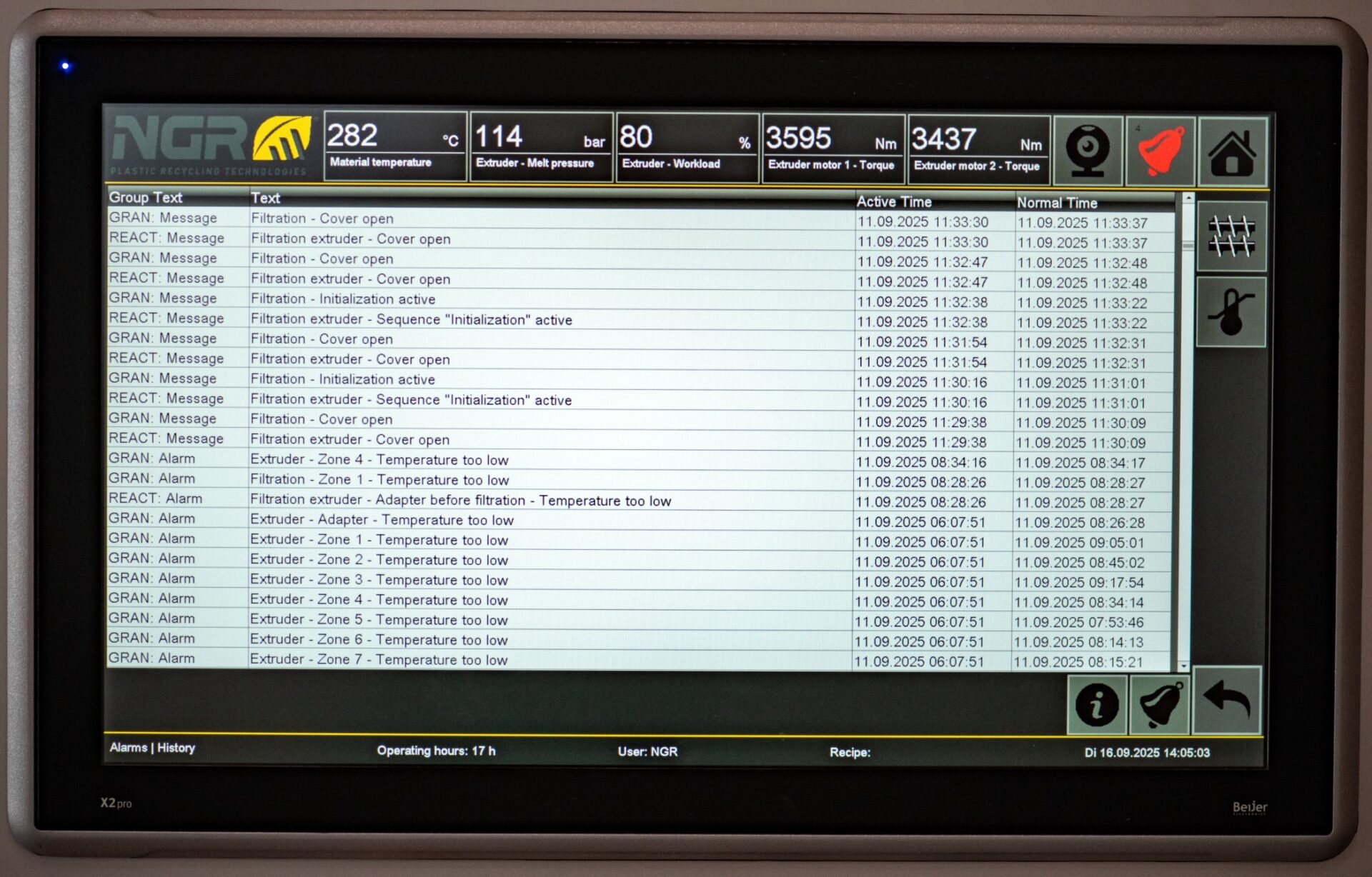 Benötigt die Maschine Aufmerksamkeit, informiert sie den Bediener zuverlässig durch optische Signale und akustische Warnmeldungen. So wrid sichergestellt, dass Prozesse jerderziet überwacht und abweichungen sofort werkannt werden.