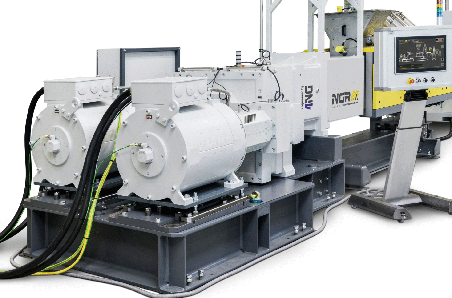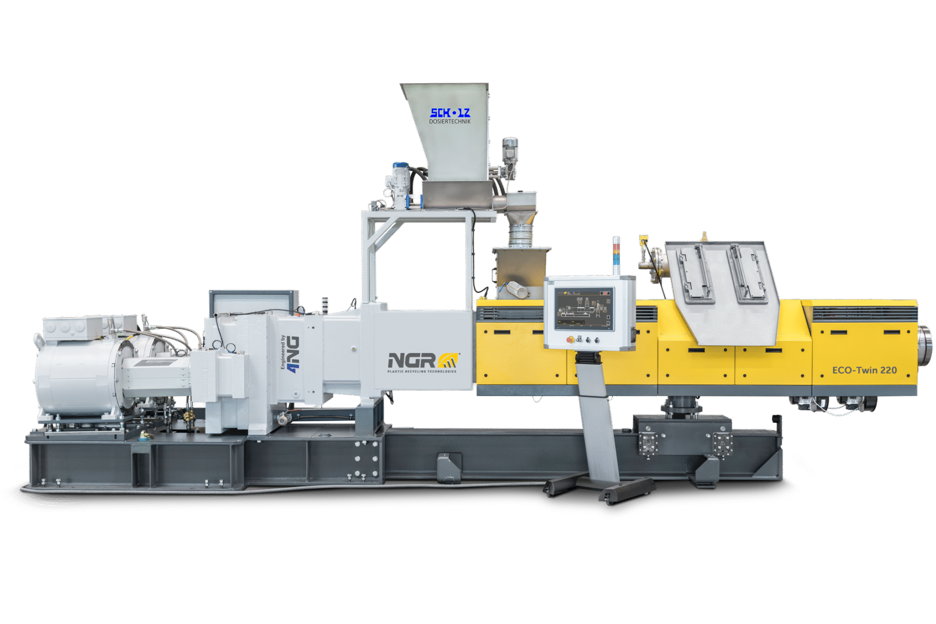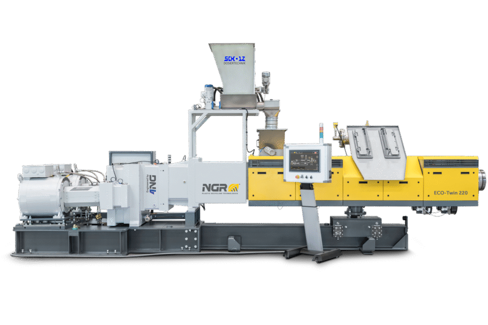 Mit dem konisch-gleichlaufenden ECO-Twin Extruder setzt NGR neue Maßstäbe in der Aufbereitung von PET-Mahlgüter. Unschlagbar niedriger Energieverbrauch, gepaart mit einem sehr schonenden Aufschmelzprozess bei sehr effektiver Schmelzeentgasung, bietet dieser