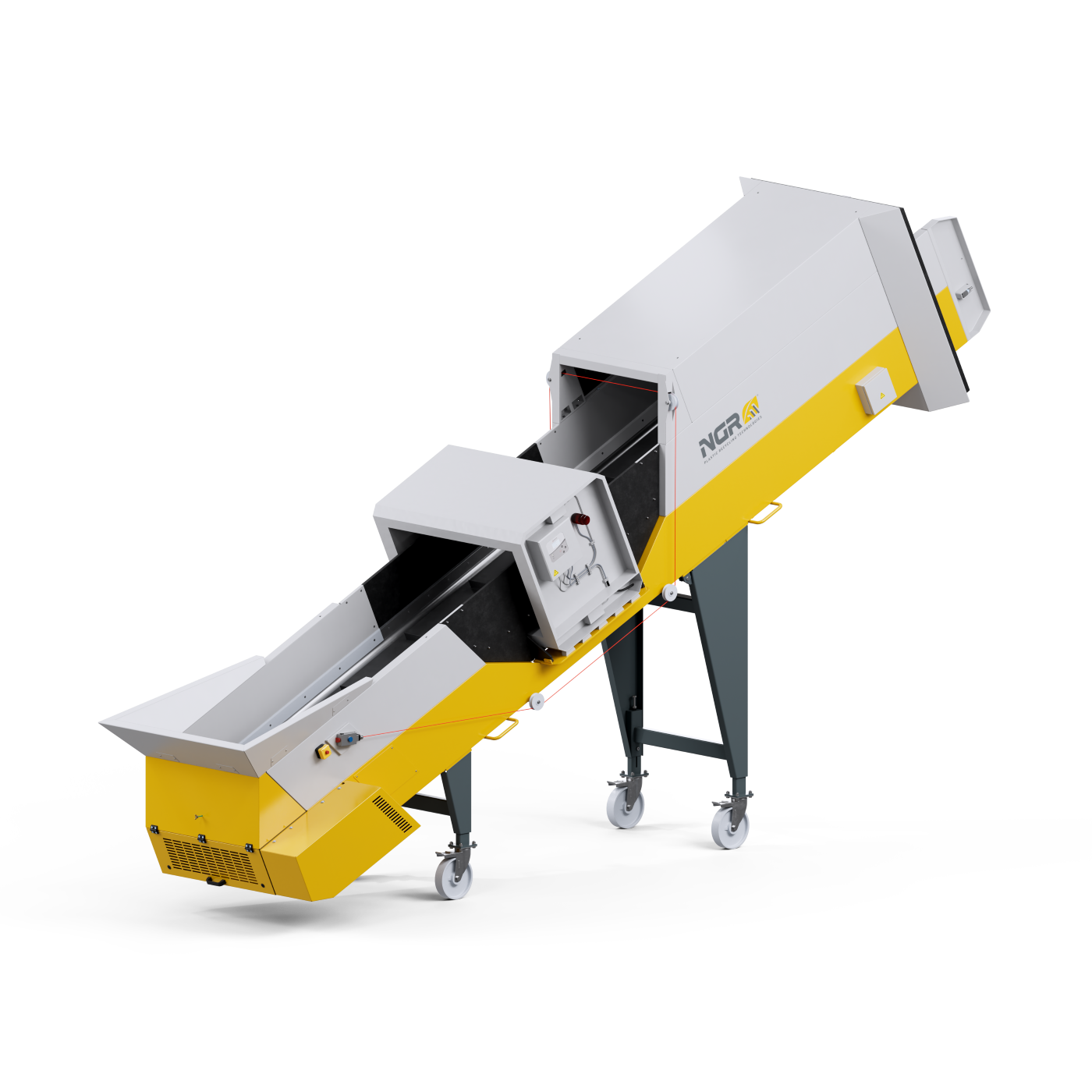 Der Materialfüllstand wird im Trichter permanent gemessen und die Zufuhr entsprechend gesteuert. Auch die diskontinuierliche Beladung des Förderbandes ist möglich; die weiteren Prozessschritte werden von der NGR Steuerung vollautomatisch eingeleitet.