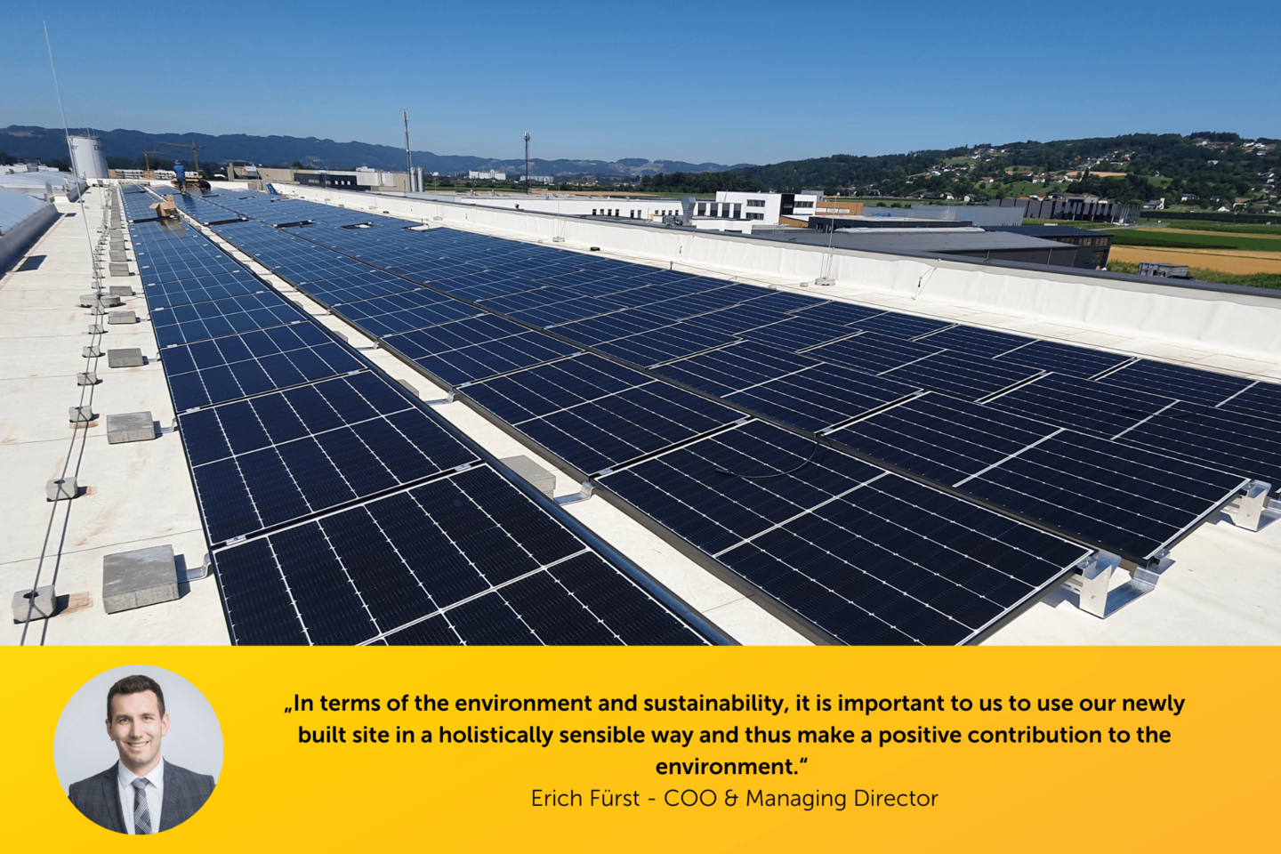 An important step in this process was the installation of a photovoltaic system on the roof of our Plant II in Feldkirchen an der Donau. With 600 modules on a roof area of approximately 2,000 square meters, we generate 261,000 kWh of energy annually, avoiding around 120,000 kg of CO₂ emissions.