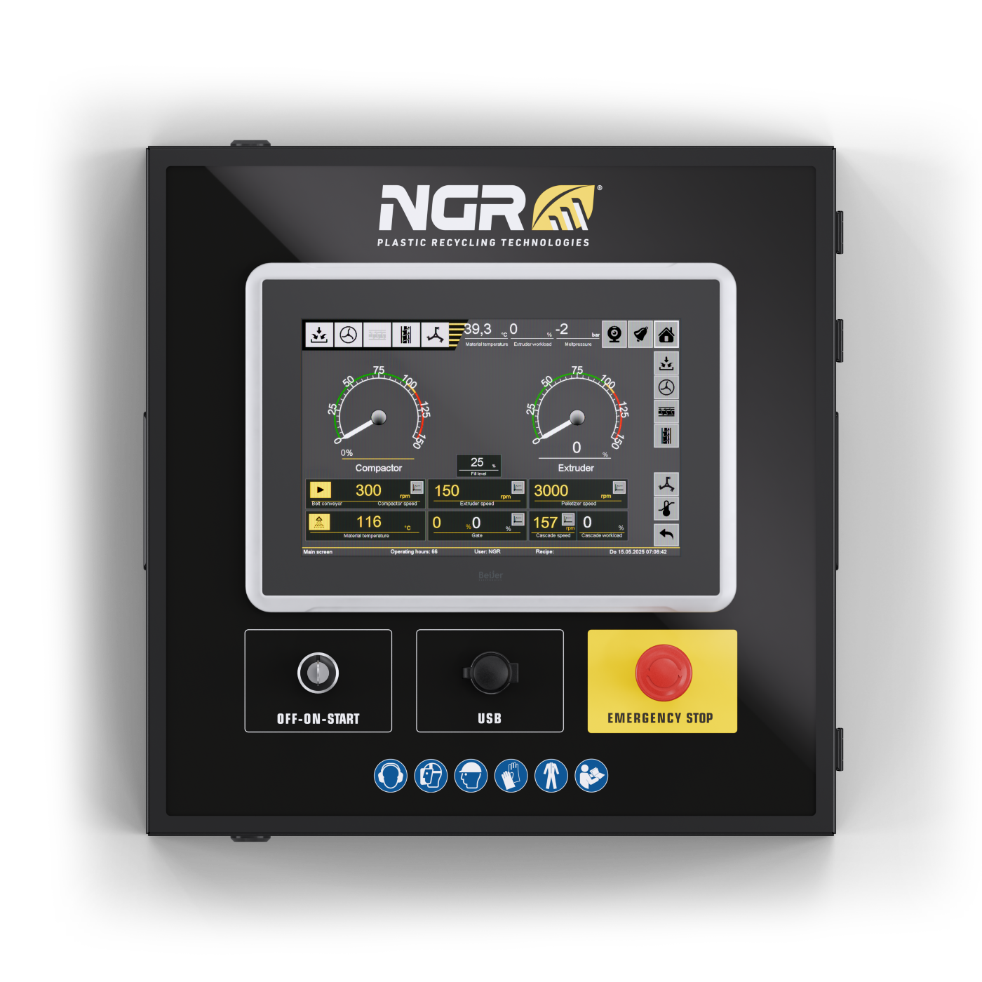Automated from start to finish, the NGR Auto-Pilot controls the feed, the energy input in the cutter-compactor and the extruder load completely autonomously. The sophisticated software intervenes in the process even in the event of minimal quality fluctuations in order to stabilise it without manual operator intervention.
