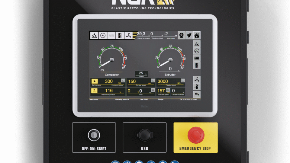 Automated from start to finish, the NGR Auto-Pilot controls the feed, the energy input in the cutter-compactor and the extruder load completely autonomously. The sophisticated software intervenes in the process even in the event of minimal quality fluctuations in order to stabilise it without manual operator intervention.
